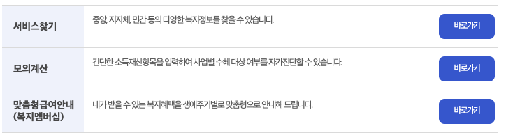 신청까지 처리할 수 있도록 만들어진 대표적인 복지 플랫폼입니다.