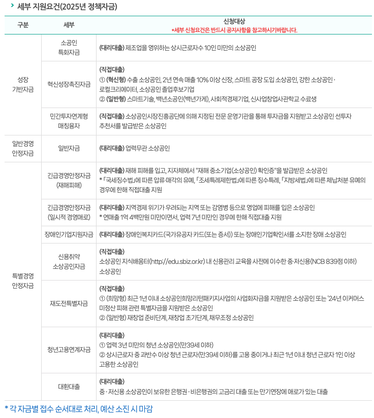 - 예산 소진 여부 확인: 정책자금은 선착순으로 예산 소진 시 조기 마감될 수 있으므로,